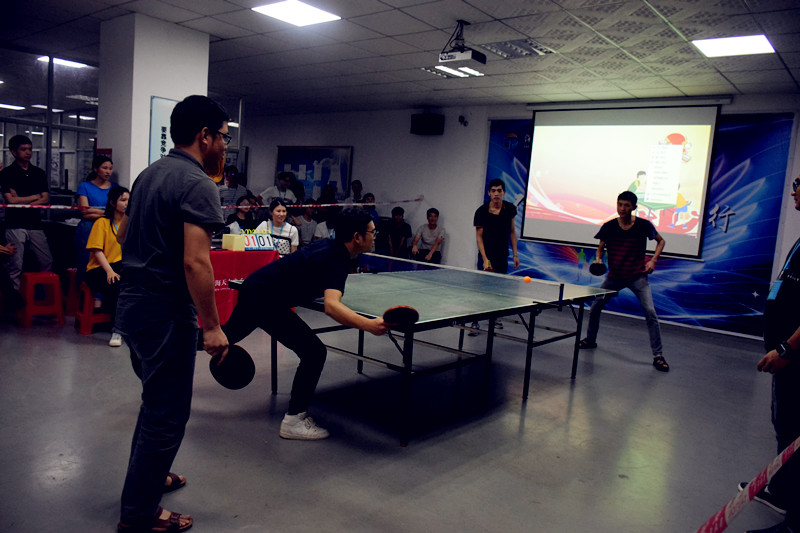 來自市場一部的蘇自強把乒乓球打出了籃球的氣勢,