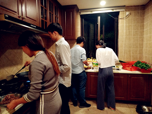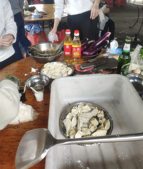 有的洗菜、有的切菜、有的殺雞、有的剖魚,干得熱火朝天,一片熱鬧。