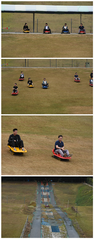 只要你坐上新奇刺激的滑草車,