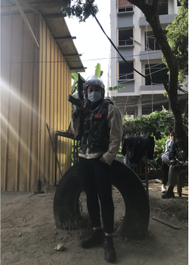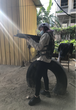 接下來就來到了今天的戰(zhàn)略要地,“CS戰(zhàn)場”眨眼之間,所有人從文弱的小職員變成了鐵血戰(zhàn)士,面臨“敵人”的槍林彈雨都毫不畏懼,勇往直前。你看我們的主管是不是特別“帥”。