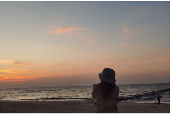 流轉(zhuǎn)的時(shí)光,都成為命途中美麗的點(diǎn)綴,看天,看海,享受著風(fēng)吹過海面。我們一路上興致勃勃的參觀,聽浪濤拍岸,看夕陽西下。