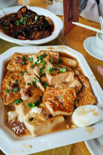 雞骨草豬骨湯、客家咸香雞、清蒸鯇魚、東江釀豆腐、韭菜炒河蝦仔、鮑汁串燒茄子、時(shí)瓜炒肉片、欖菜豆角肉松、客家蘿卜肉丸煲、蒜蓉炒青菜(菜色就不一一放圖啦,免得饞到你們)