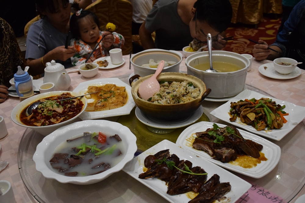 所謂鵝城,可想而知,特色菜就是鵝肉啦,沒錯:全鵝宴+黃鱔飯,光看菜的顏色,想想就覺得