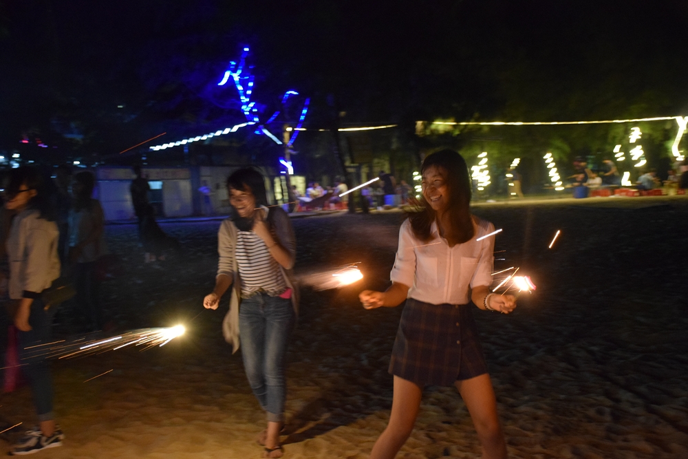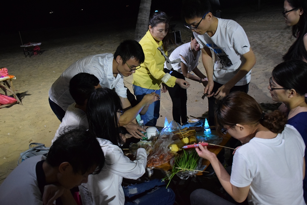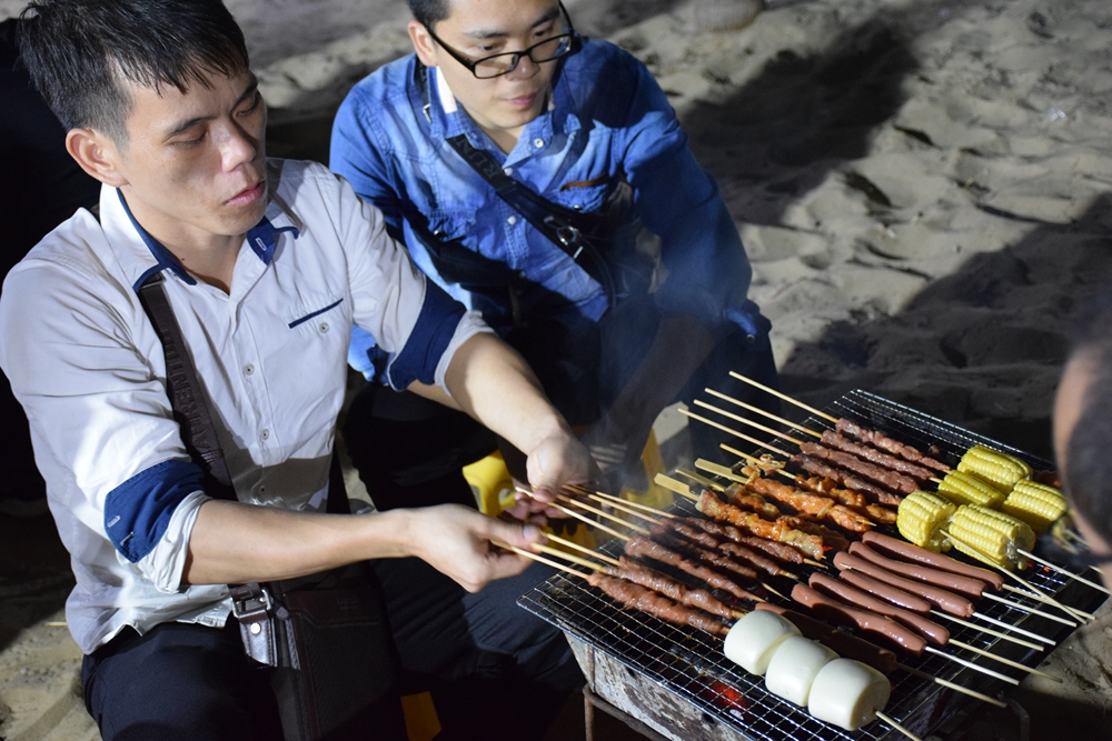白天吃好玩好,晚上自然也不能虛度,海邊燒烤+篝火晚會,邊吃邊唱,簡直就是爽歪歪, 先唱
