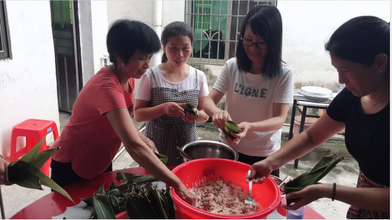 快到端午佳節(jié),我們的女同志們湊在一起包起了粽子。